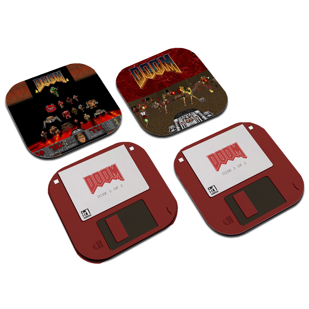 Posavasos | Set x4 Doom Juego Retro Disquettes